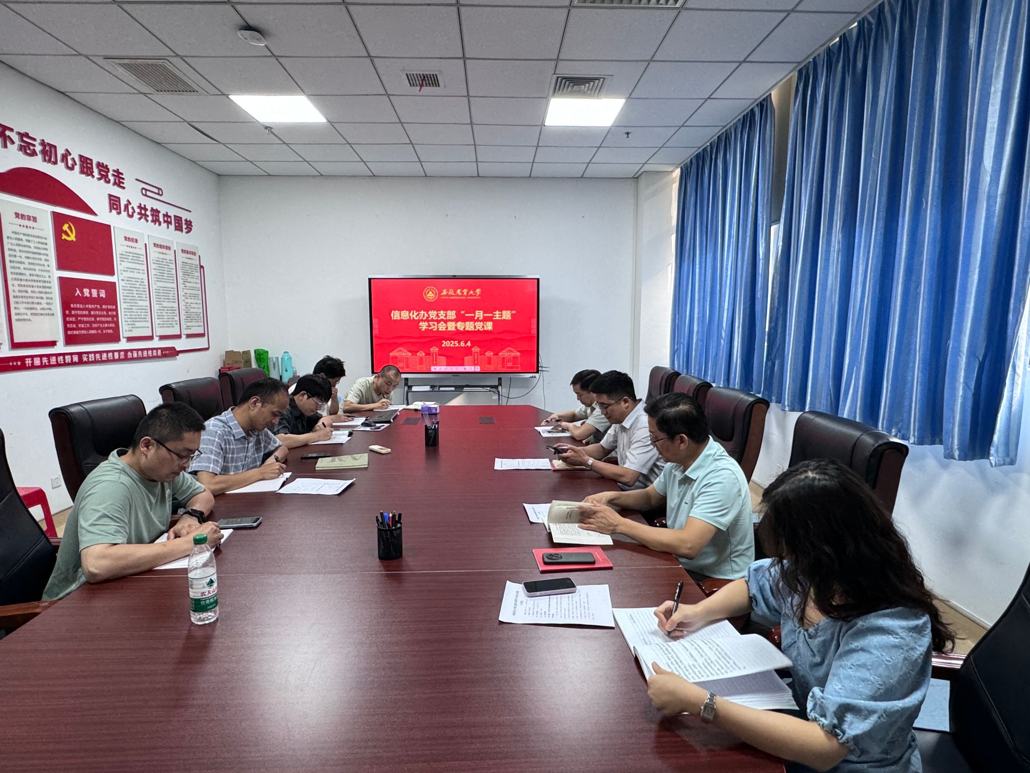 6月4日下午,信息化办党支部召开“一月一主题”专题学习会。会议由支部书记徐光翔主持,全体党员参加会议。