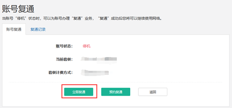 点击“立即复通”