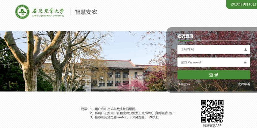 1.登录安徽农业大学官网点击智慧安农图标,看到如图所示。