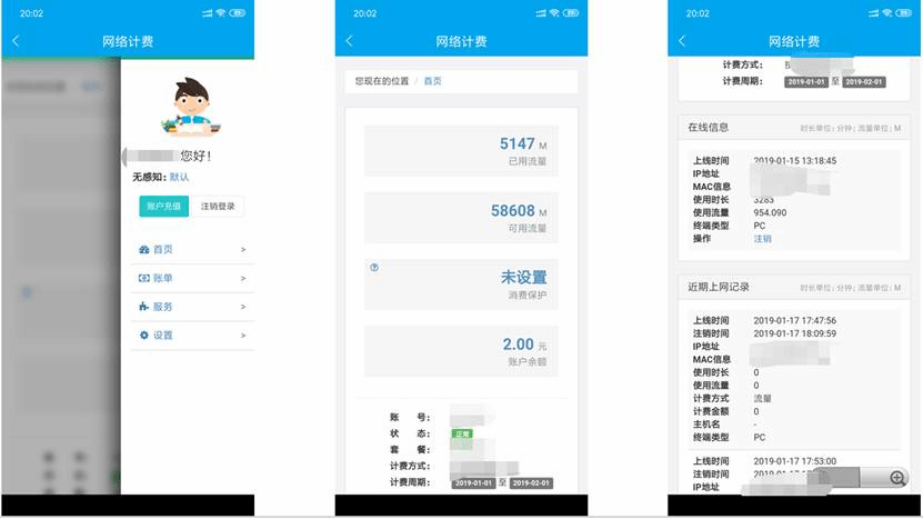 3.可以查看自己账号在本月的已用时长、已用流量和账户余额
