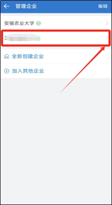 2. 点击“管理企业”,再点击已错误加入的企业名称。