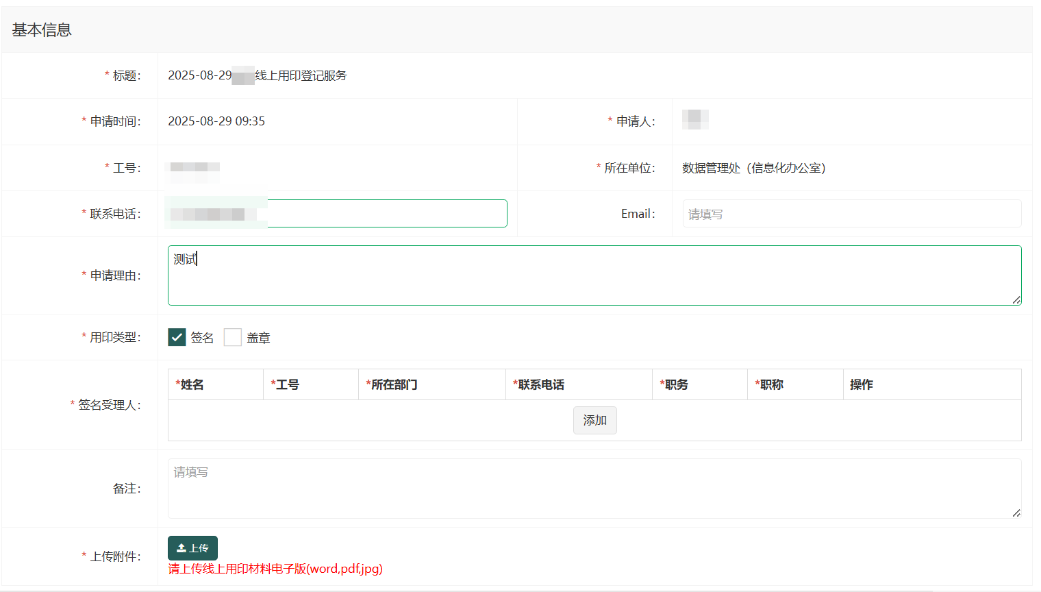 1.校内师生用户发起申请,上传材料;