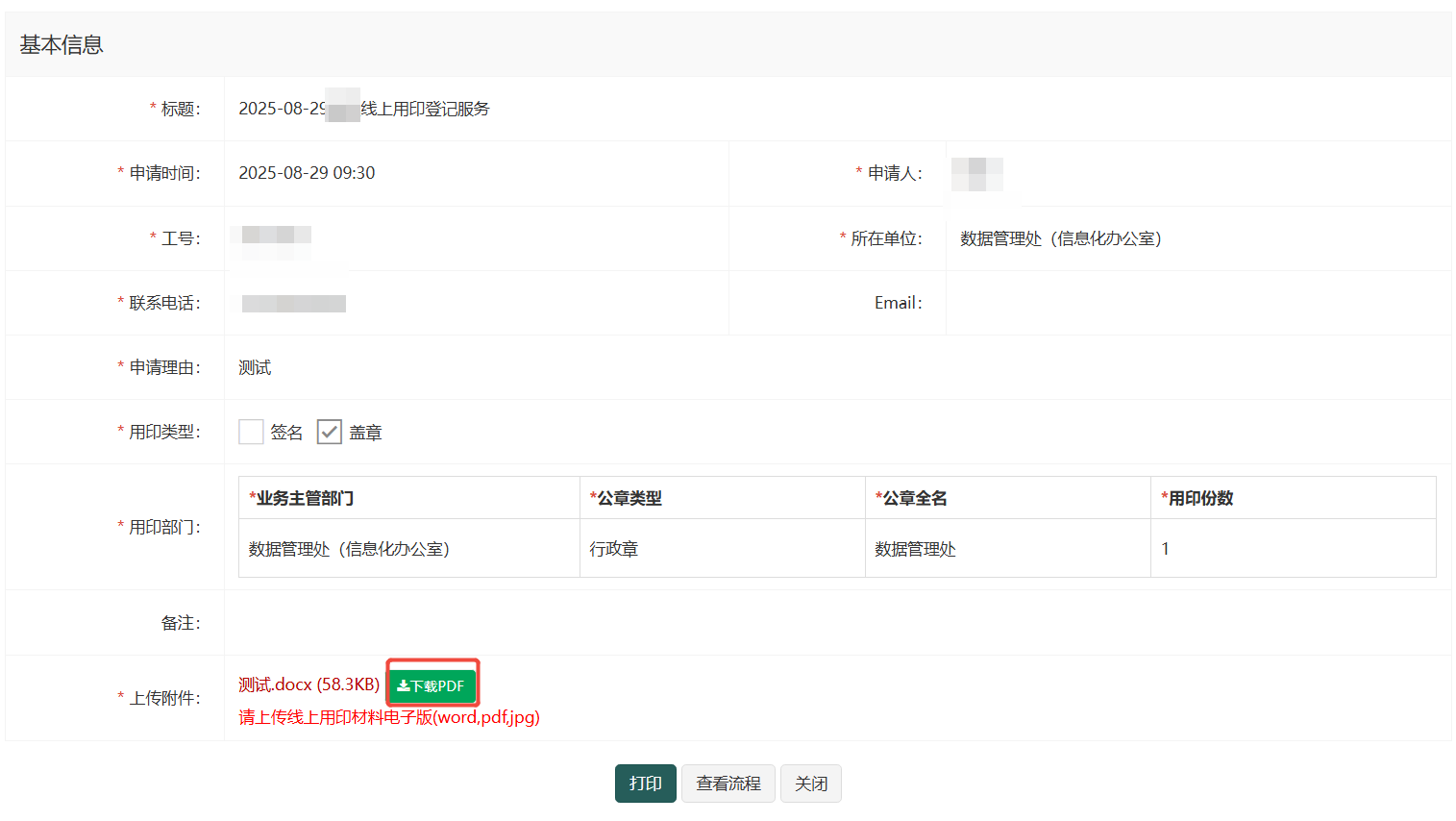 找到所需的办事流程,找到“下载PDF”
