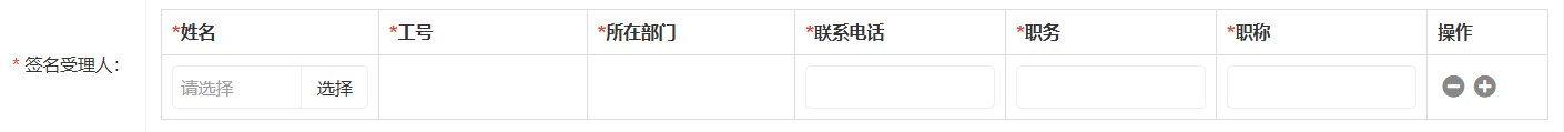 选择签名受理人,可选择单个或多个,如需选择多个签名受理人,可点击末尾的加号进行添加。