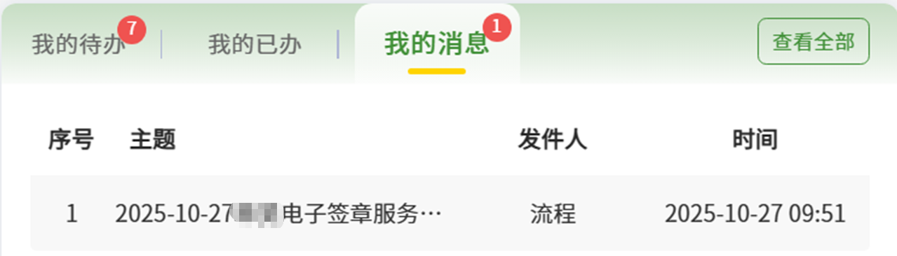 提交成功后,在数智安农-我的消息栏目会收到1条短消息