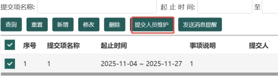 配置完成后,选中提交项,选择维护提交人员(通过学工号可选择在校师生),师生可在“文档收集报送”中报送提交。