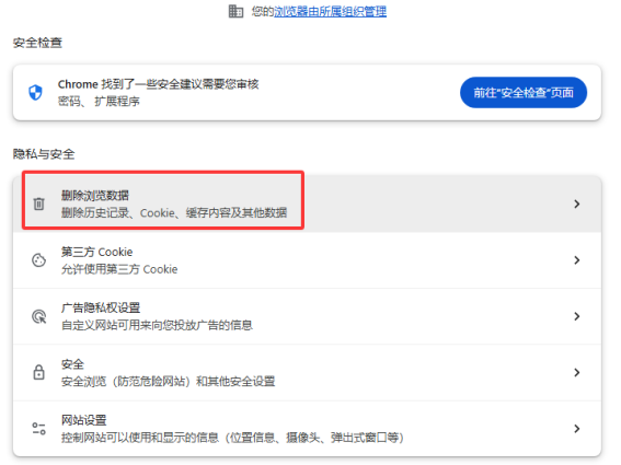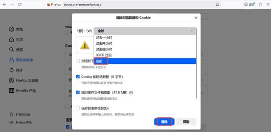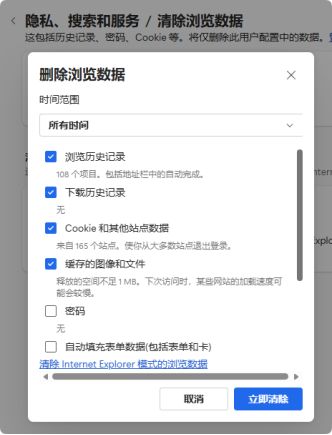 点击-隐私与安全-删除浏览数据-选择全部时间段-删除数据