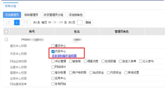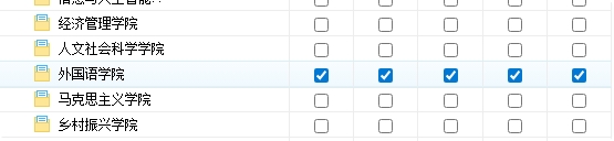 通过下拉三角展开栏目,找到【招生录取】栏目,再次展开,找到外国语学院,在【资料维护、发布文章、他人资料、头条、置顶】等功能中,按照实际情况勾选授权,然后确定即可。