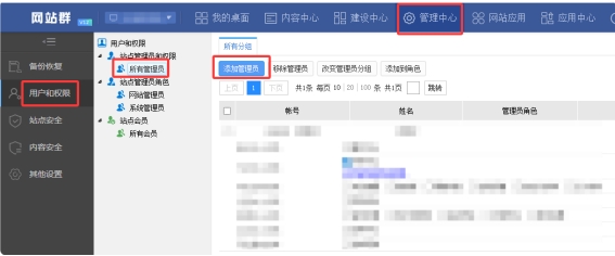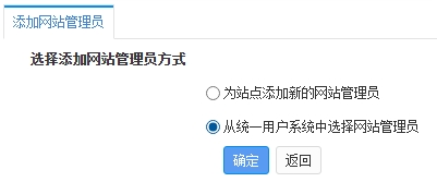 在研究生院后台管理站点-【管理中心】-【用户和权限】-【所有管理员】-【添加管理员】功能中,选择【从统一用户系统中选择网站管理员】